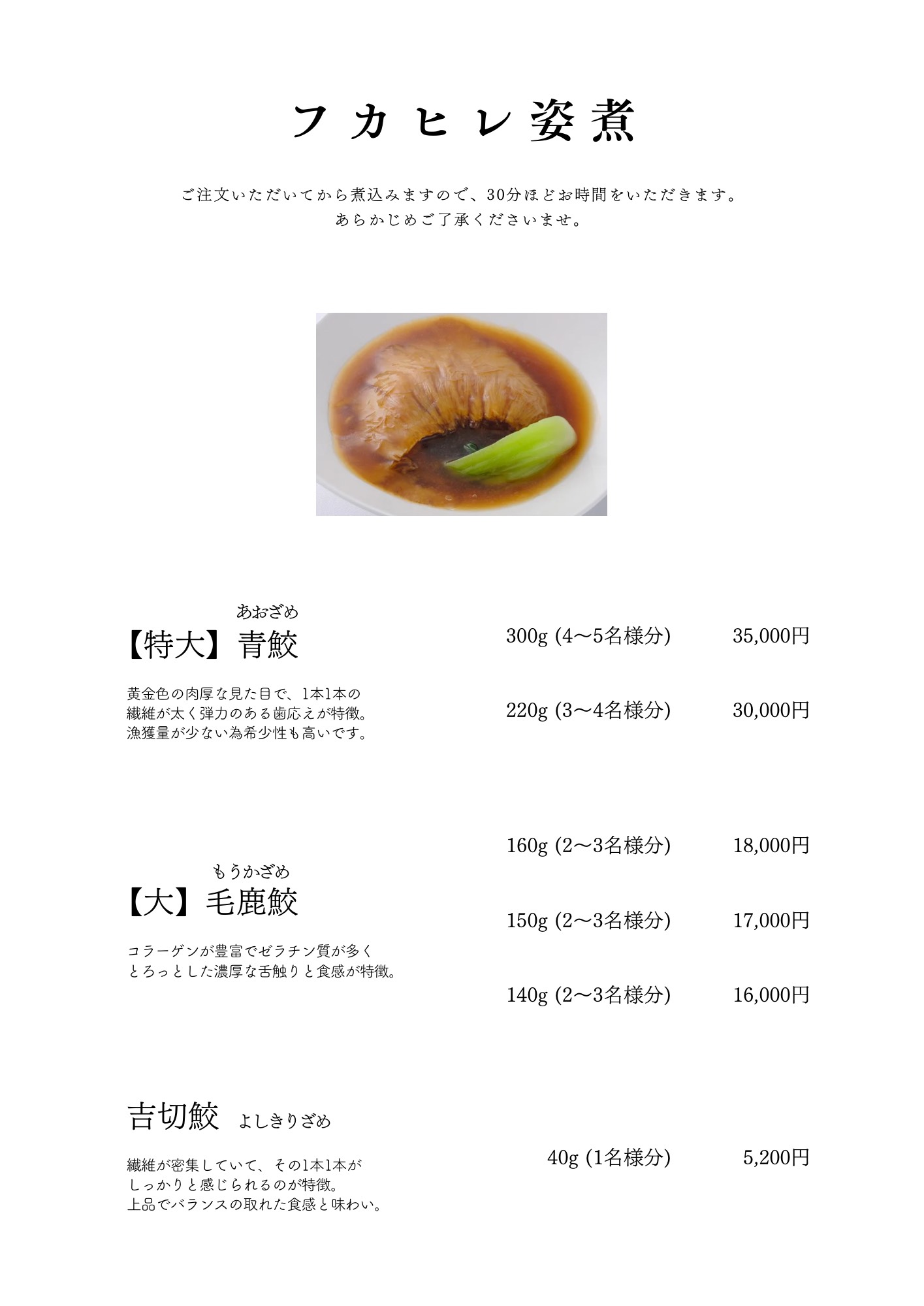 フカヒレ姿煮メニュー